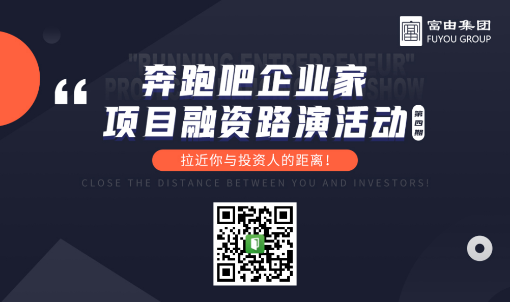 和往期一样,第四期“奔跑吧企业家”项目融资路演活动将于7月7日(周三)在富由集团举行,我们将邀请优秀的项目和主流投资机构,继续为企业家们提供高效对接,一对一的深入沟通机会,帮助优秀的项目获得融资,助力创新型企业获得更高速成长的机会。