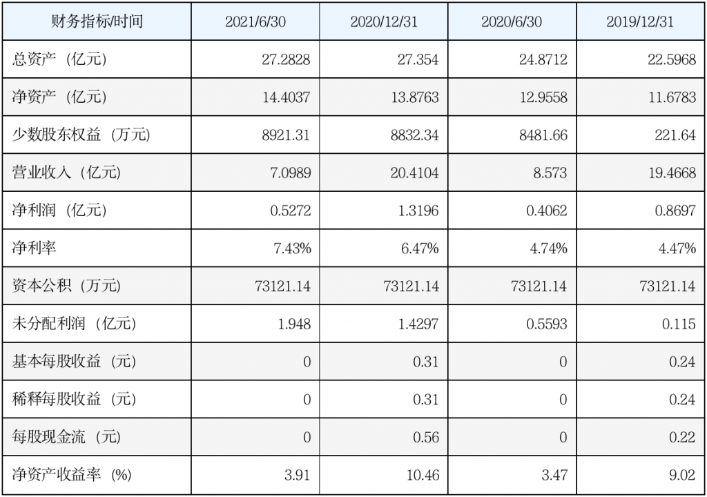 财报显示,2021年1-6月,中粮工科实现营业收入70,988.68万元,同比下降17.19%;实现归母净利润5,182.70万元,同比增长25.70%;利润率由2020年6月的4.74%上升到2021年6月的7.43%。