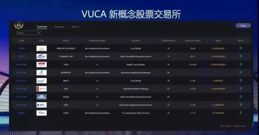 英国新概念交易所VUCA Board,是为企业提供上市辅导的一体化解决方案的新概念交易所,是一个架设在英国的中小企业登记和交易股票的平台,并由英国畅发资本运营,英国FCA监管并授予牌照。以“帮助发展中国家中小企业成长,解决中小企业融资难”为经营主线,致力于在国际资本市场上提供高质量的投资和企业推广机会,创造真正的数字经济下的全球股权智能融资平台。