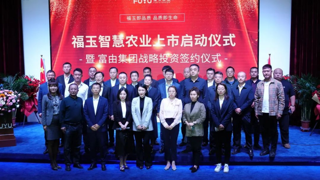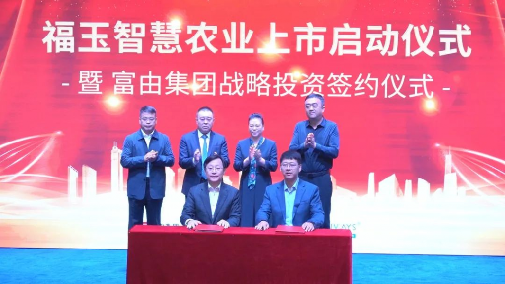 2022年9月7日,福玉智慧农业上市启动仪式暨富由集团战略投资签约正式举行。吉林省政府驻上海办事处副主任赵金敏,上海市吉林商会会长、上海森蜂园蜂业有限公司董事长于富民,延边州商务局国内招商处处长郑丰文,安图县副县长孙羚哲,安图经济开发区党工委书记、管委会主任韩胜芳,上海市吉林商会副会长、上海富由集团董事长陆军出席仪式。