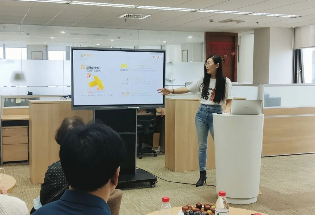 随后,董事长助理刘雪颖女士详细地介绍了福玉智慧农业的产品和理念,就行业创新发展以及未来发展规划进行了分享。福玉智慧农业作为2022年延边州第一批农业产业化重点龙头企业,创新性地开发了「真空包装鲜食玉米」,通过这种新工艺生产的玉米,在耐储存、口感、烹饪时间、消费场景等方面,均胜过了干玉米和新鲜玉米。在商业模式、创新技术、优质产品和利好政策的共同作用下,也吸引了大量的投资方,并且随着政策对于智慧农业的不断倾斜,福玉智慧农业的发展将会迎来更大的机遇。