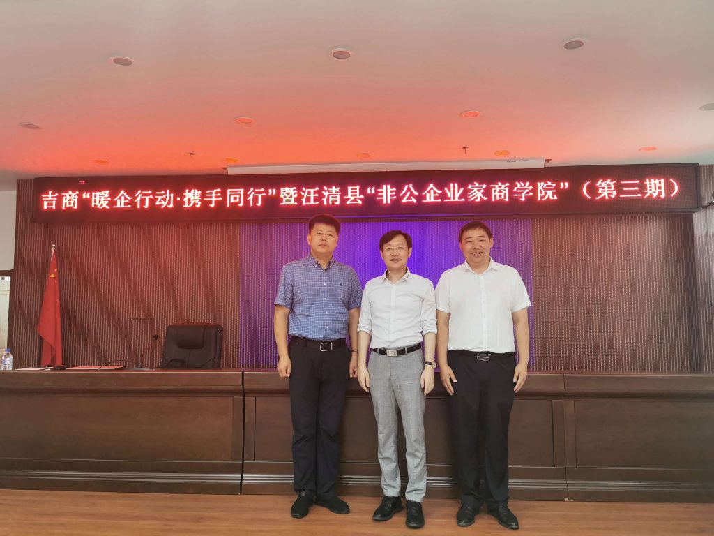 本次吉林省的考察活动中,富由集团在吉林省延边朝鲜族自治州汪清县于7月13日举办吉林省“暖企行动,携手同行”暨汪清县“非公企业家商学院”培训班活动,为汪清中小企业开展投融资相关培训。汪清县委常委、组织部长许海兰出席开班仪式。